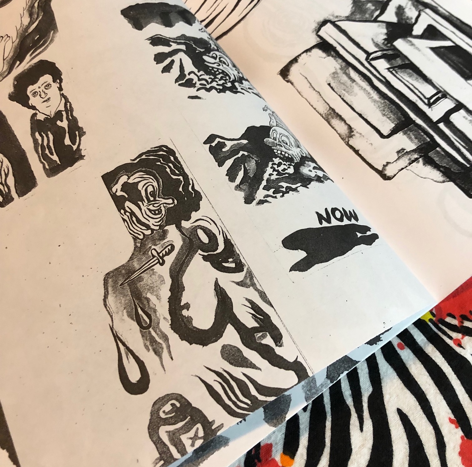 Art zine of black & white ink & wash drawings by Chris Cajero Cilla. 16 pages with hand painted front covers.