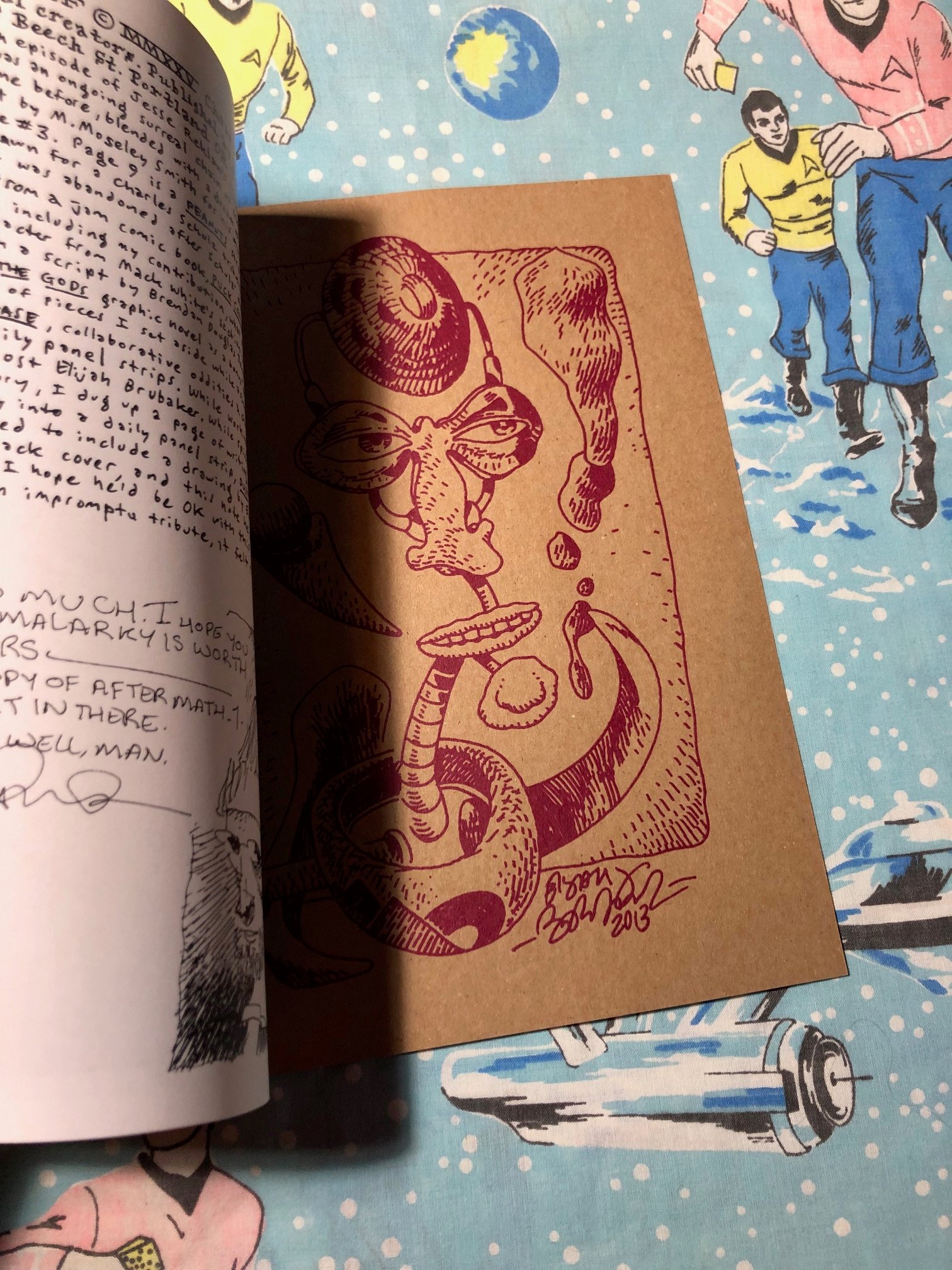 This is a collection of old and new comics and art by C. Cilla, includes some collaborative strips, and a tribute to Elijah Brubaker, including a screen print of his art on the inside back cover. 18 pages plus screen printed covers, 8.5x11", numbered edition of 100.